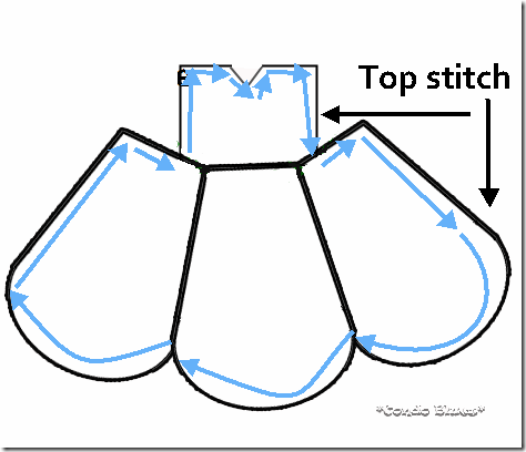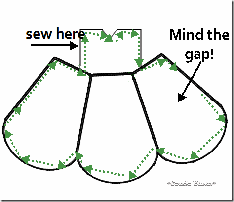 1. Use the panel pattern to cut three petals from your pretty front fabric and three panels of your lining fabric.