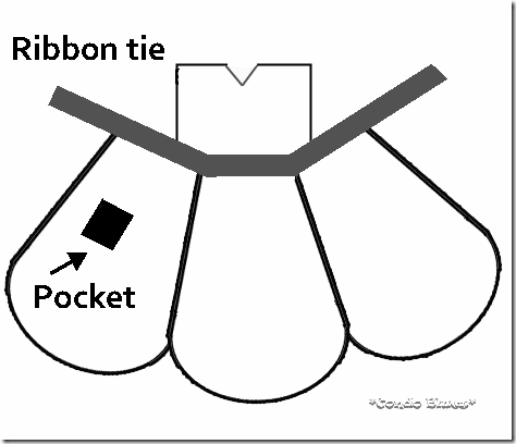 20. Pin and sew a 2 inch wide by 92 inch long (approximate) ribbon along the front of the apron were the top and bottom of the apron meet.